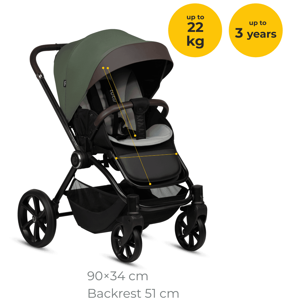 Stroller is designed with an adjustable footrest position, ensuring comfort for your little one. Whether sitting up to explore or reclining for a nap, the footrest adapts to provide proper leg support and a cozy ride. This ergonomic feature enhances relaxation.